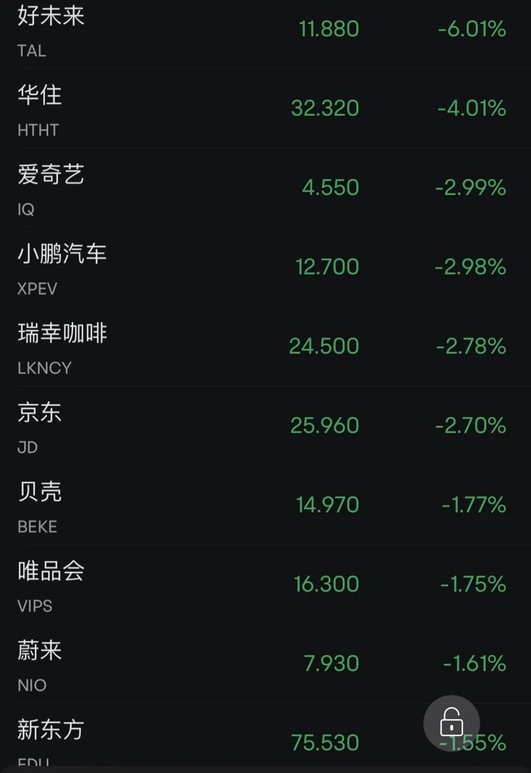 热门中概股普遍下跌,达达集团跌45.87%,叮咚买菜跌7.34%,好未来跌6.13%,陆金所控股跌5.42%,华住跌4.01%,爱奇艺跌2.99%,晶科能源跌2.81%,京东跌2.7%。